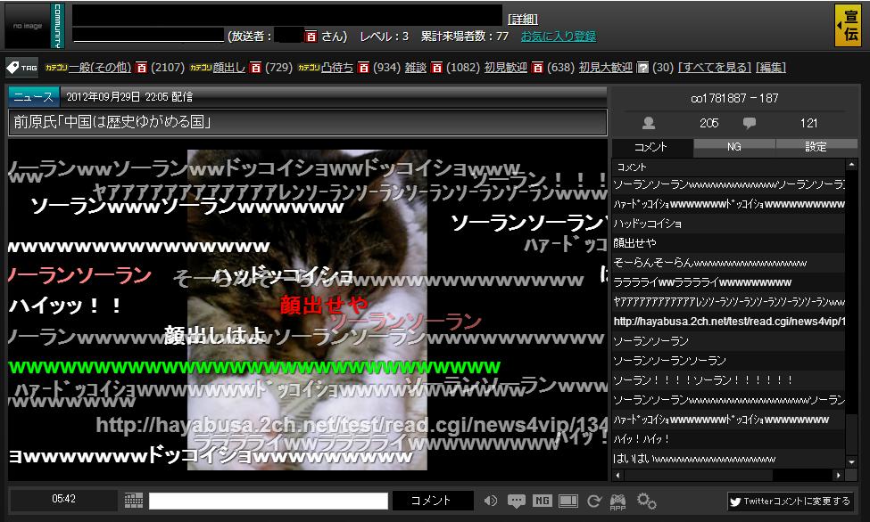 http://com.nicovideo.jp/community/co1710437 - 6 名無しさん@お腹いっぱい。 投稿日:2012/09/28(金) 18:14:36.63 ID:nYepBIgJ0