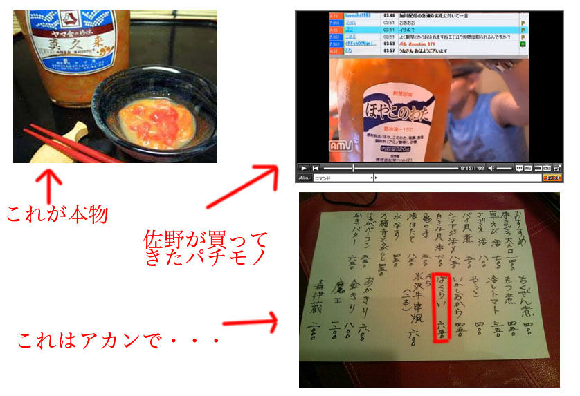 ・大衆酒場うなが市販のほやこのわたを、莫久来(ばくらい)と偽って販売。