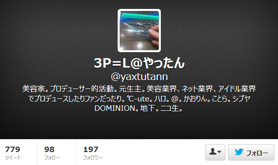 ということで早速@yaxtutann(以下やったん)のツイッターに飛んでみた。