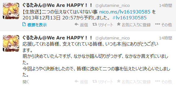 ・ぐるたみん12/13に引退発表か。「皆様に改めて二つのことを伝えたいと決心いたしました」