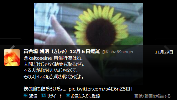コメでわざと隠していますが、画像元ははっきりとリスカ傷が