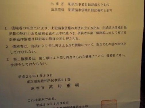 ・NERに債権差押命令状が届く。銀行口座も差し押さえられたもよう。