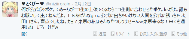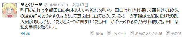 どうやら前日に山本華世の公式チャンネル「カヨチャンネル」に田口氏ととくぴーが出演した事が発端だそうだ。