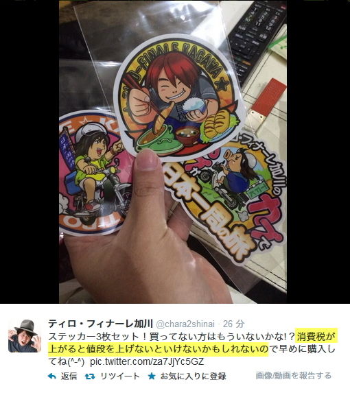 ・ティロフィナーレ加川が自身のステッカー販売について「消費税が上がると値段を上げないといけないかもしれない」