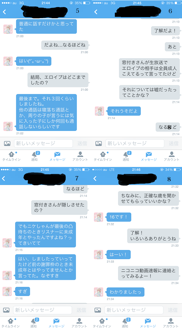 ・歌い手調味料の12歳淫行事件の暴露配信の協力をしたニコ生主「ニケ」が15才や17才とエロイプしていたことや出会おうとしていたことを暴露される