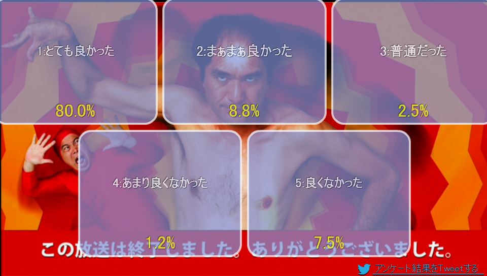 ・江頭02:50がDVD発売記念にニコ生降臨。アンケートで「とてもよかった」80%を叩き出す。