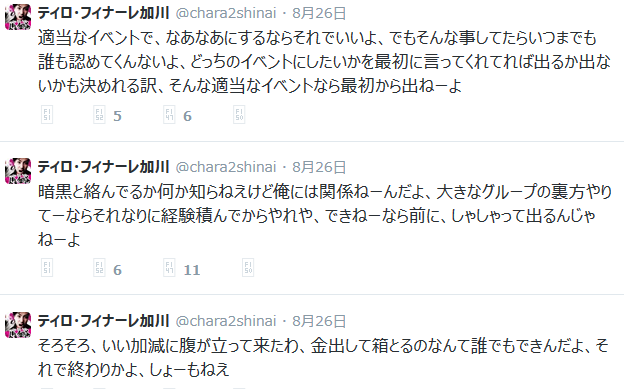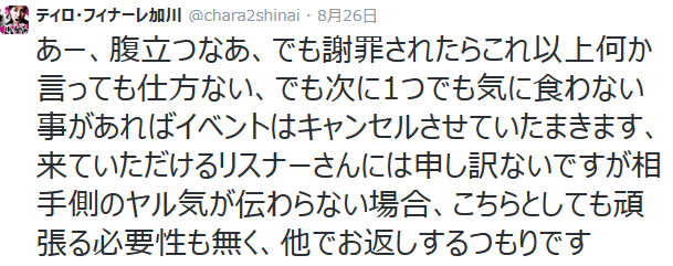 出るのはおかしいとして、イベント主催者を痛烈批判。