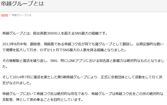その中でも帝越コクは絶対的な存在であり神としてあがめることが会員の目的だという。