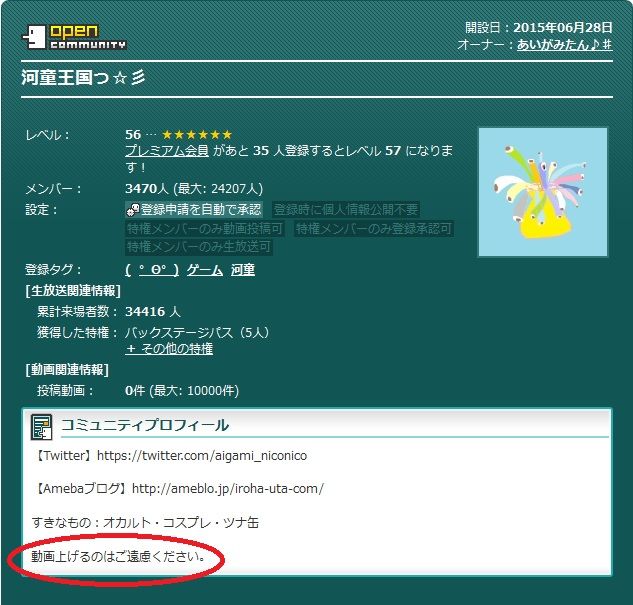 これを受けてか藍上のコミュ掲示板に「動画はあげないで下さい」と
