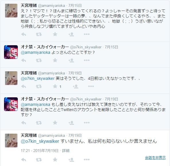 ある配信者は「未成年者への淫行」だと暴露したが、現在ツイートは削除されている。
