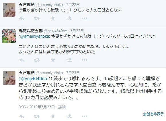 そして「犯罪起こり始めるのが平均15歳から」と、淫行をほのめかすツイートも。