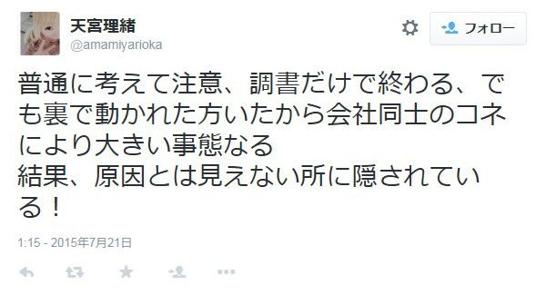 「普通に考えて、注意、調書だけで終わる、でも裏で動かれていた方(が)いたから