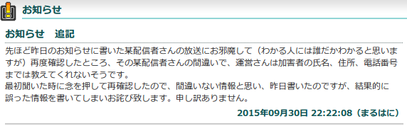▼運営がアンチリスナーの個人情報を生主に通知?