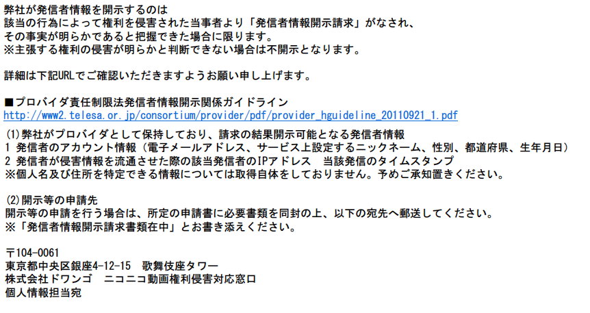 書き込み者にはドワンゴからの情報開示請求として行くため