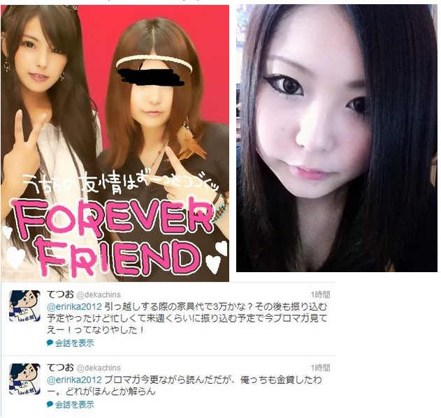 ▼えりりかの愛人らから総額330万円騙し取り事件