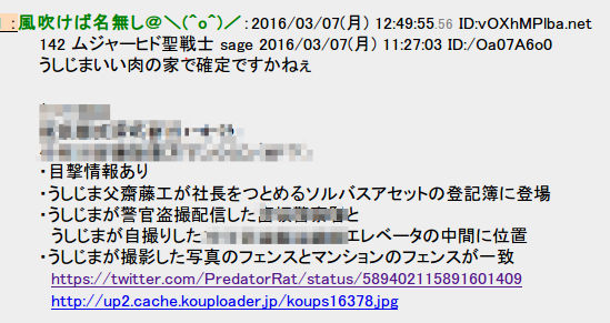 ・うしじまいい肉が2ちゃん民に住所を特定される。