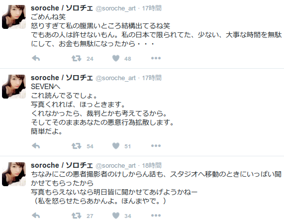【拡散希望】 信じられないです。日本に行って撮影頼まれたのでやりましたけどスタジオ代も自分で背負いました。帰国後写真送るって言われたのだが、ブロックされました。4着撮影したのに一枚ももらってないままブロックされた・・・最悪です・・・ pic.twitter.com/YLoRbOD1KD