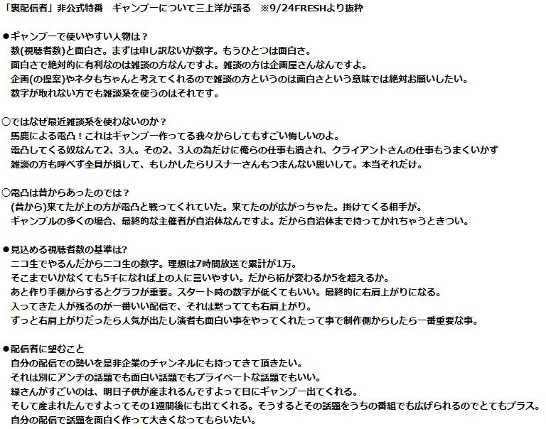 【裏配信者特番】ITジャーナリスト三上洋さん 配信とギャラについて「横山緑と石川典行にはベンツに乗って金バラまいて毎晩豪遊してほしい」https://t.co/UpCNwkwrhP pic.twitter.com/LUWFR8wIaK