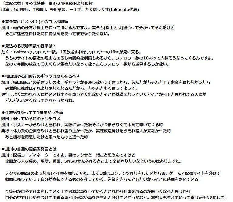 「裏配信者」非公式特番 ※9/24FRESHより抜粋https://t.co/F8iXjTd1fR pic.twitter.com/OAHbxgYgyz